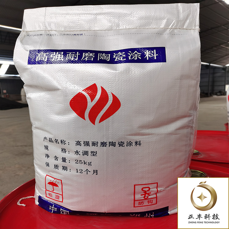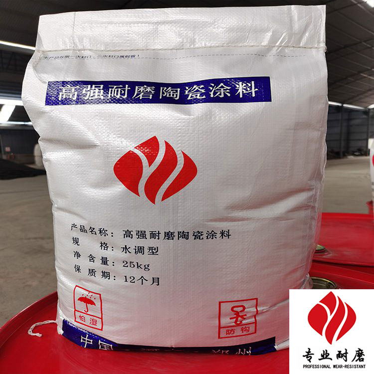 包装 耐磨陶瓷涂料为25kg/袋包装,内置塑料袋小包装促凝剂(用以调节可塑料初凝时间),同时配桶装磷酸盐溶液作结合剂,加入量为袋装粉料的12%左右。